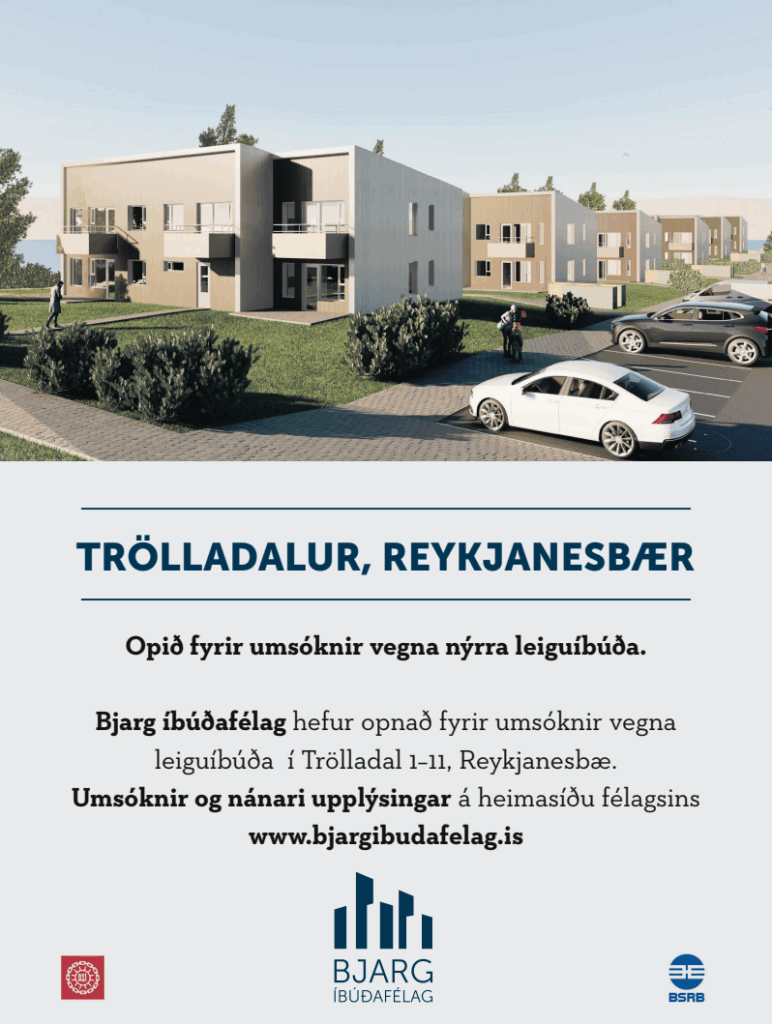 17 Nov 2025 Heim » Fréttir » Fréttir » Opið fyrir umsóknir vegna nýrra leiguíbúða, Trölladal 1-11, Reykjanesbæ.Opið fyrir umsóknir vegna nýrra leiguíbúða, Trölladal 1-11, Reykjanesbæ. eftir Vefstjóri | skráð í Fréttir | 0
